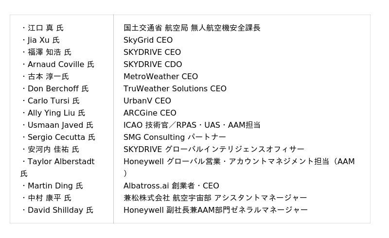 特に欧米、UAE、アジア諸国の規制当局の関係者が一堂に会するなど、AAMに特化した、画期的なイベントとなります。