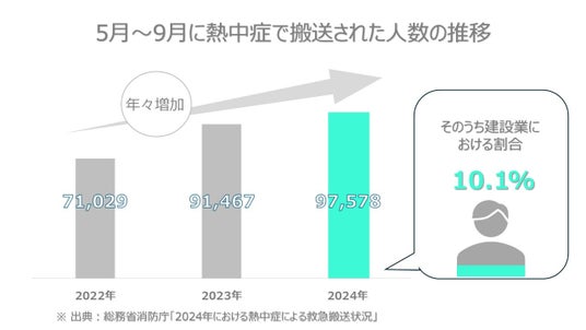 猛暑による熱中症リスクが年々深刻化する中、2024年には約9.7万人が熱中症により搬送されました。特に屋外作業が多い建設現場では、労働環境の安全性と健康管理が喫緊の課題となっています。