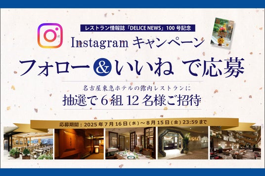 名古屋東急ホテル(名古屋市中区栄/総支配人:金子 真之)では、ホテル季刊誌「DELICE NEWS」の創刊100号を記念し、2025年7月よりInstagramを活用したキャンペーンを実施いたします。