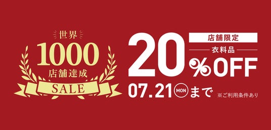 7月18日(金)~7月21日(月・祝)、衣料品20%オフなどお得な4日間