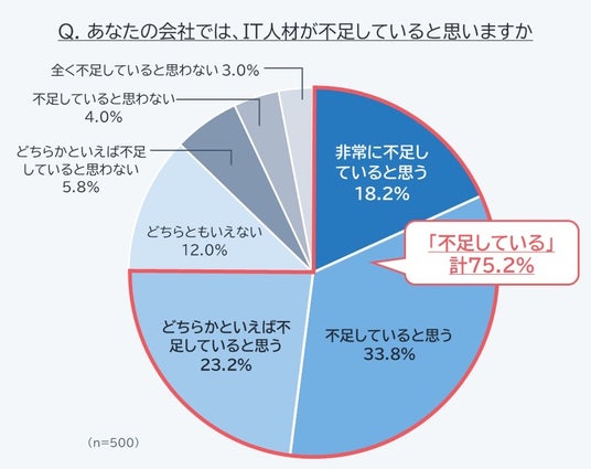■企業の75.2%が「IT人材不足」と回答、大企業で79.2%と約8割にのぼる