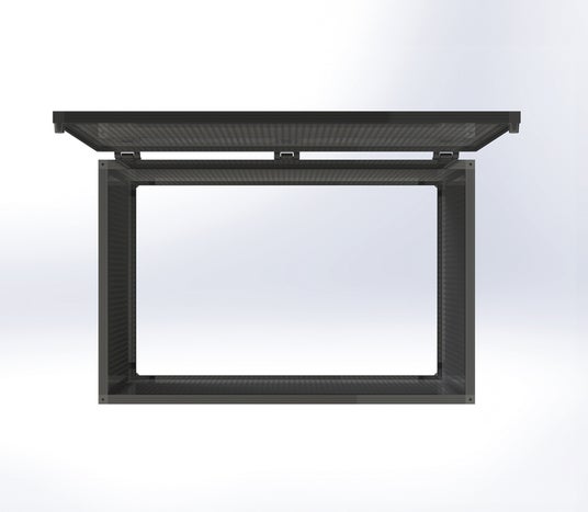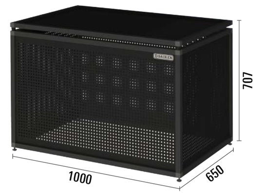 「CKP型」は、本体にパンチングパネルを使用しており、通気性・防犯性を追求したデザイン。モダンスタイルな建物にも調和するブラックカラーを採用。材質はフレームがアルミ製、パネルはアルミ樹脂複合板です。アルミフレーム、ジョイント材、パネルの3つの部材を組立てる仕様で、軽量で取扱いも容易なため、スムーズに施工できます。