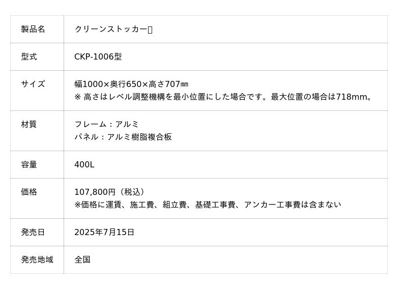 建築金物・外装用建材・エクステリアなどの総合メーカー、株式会社ダイケン(本社:大阪市淀川区 社長:藤岡洋一)は、集合住宅や戸建て住宅、店舗向け用の屋外ゴミ収集庫からパンチング仕様で通気性が良く、臭いがこもりにくい「クリーンストッカー(R) CKP型」を2025年7月15日から発売します。