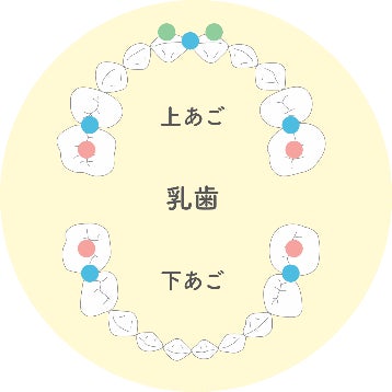 乳歯は6か月頃から生え始め、1歳半~3歳頃までに生えそろいます。上の前歯が生えてきたらハブラシでの仕上げみがきスタート。まずは肩の力を抜いて、歌を歌うなど楽しい雰囲気で。
