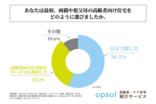 2025年には、団塊の世代が後期高齢者となり、医療・介護の需要が一段と高まるものと思われます。同時に、高齢者向け住宅や介護施設の数も年々増加しており、「どのように選べばよいかわからない」という方も少なくありません。そこでopsol株式会社は、両親や祖父母の高齢者向け住宅選びを経験したことがある40代~60代の男女を対象に、「高齢者向け住宅選び」に関する調査を実施しました。