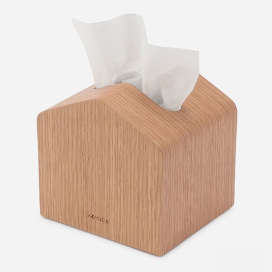 KEYUCA では、アイテムの使いやすさはもちろん、どんなお部屋にもなじむデザインにもこだわっています。「コンパクトティッシュケース」は、無駄のない効率の良いデザインながら「おうち」のような見た目で可愛らしく仕上げました。