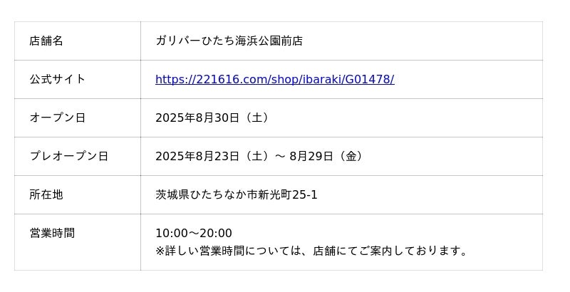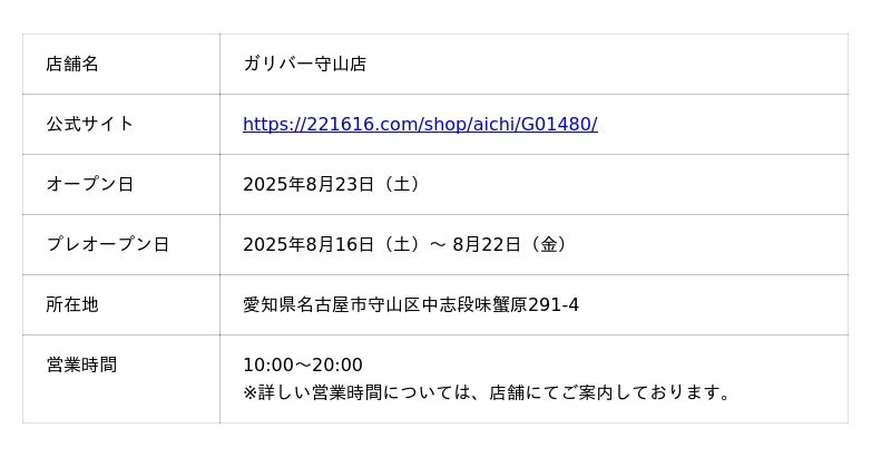 株式会社IDOM(本社:東京都千代田区丸の内二丁目7-2 JPタワー26階、以下:IDOM)はガリバーブランドの新店舗として、2025年8月23日(土)に「ガリバー守山店」(愛知県名古屋市守山区)、2025年8月30日(土)に「ガリバーひたち海浜公園前店」(茨城県ひたちなか市)をオープンいたします。