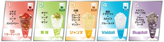 コラボドリンクは、「13(サーティーン)」「零夜」「ジャンヌ」「Voidoll」「Bugdoll」をイメージした全5種をご用意します。