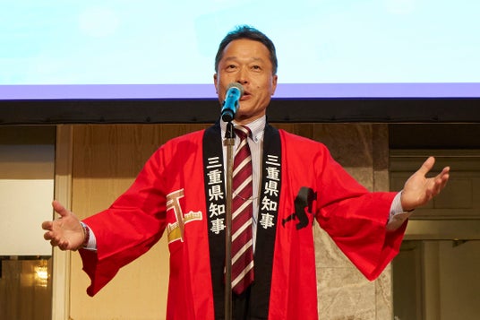 二部制の本イベントでは、まず第一部の冒頭で三重県一見勝之知事より「三重県は良い所がたくさんあるのですが、三重県民はあまり宣伝が得意ではないので、三重県の魅力を発信するために9年ぶりにレセプションを開催させていただきました」と挨拶と三重県への誘客への想いを語りました。