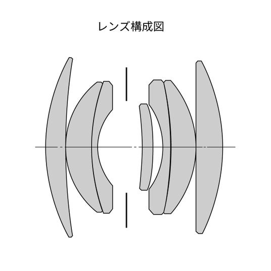 - レンズ構成:5群7枚(ランタニウムガラス4枚、高屈折率ガラス1枚)