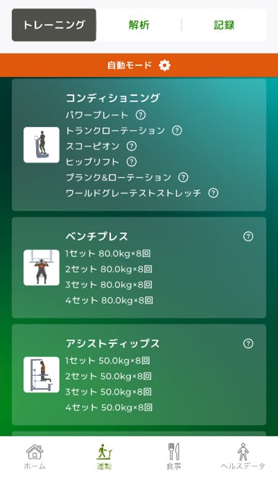 さらに日々の動作やトレーニング状況を解析し、AIが継続的にメニューをバージョンアップしていき、食事における目標消費カロリー/摂取カロリーを自動でデータ化します。
