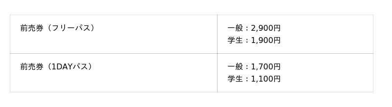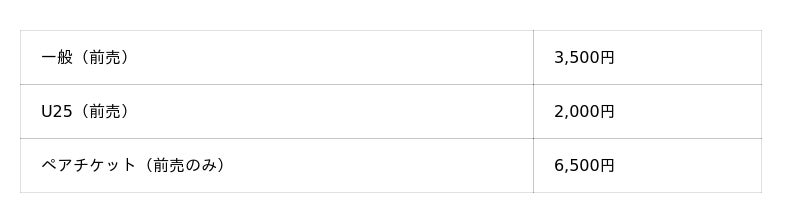 前売チケットの価格は一律で、以下のとおりです。