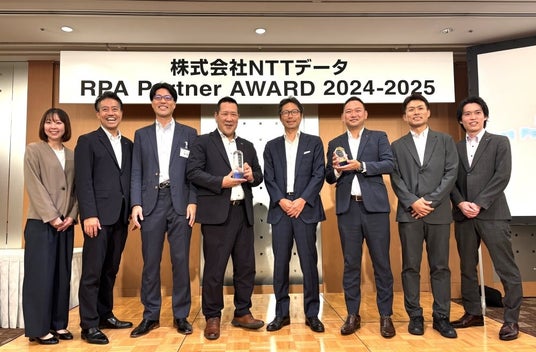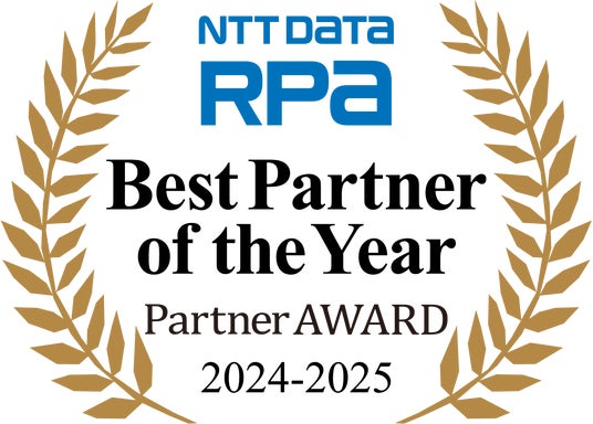 「NTTDATA RPA Partner AWARD2024-2025」は、NTTデータ社がRPAビジネスで卓越した功績をあげたパートナー企業を表彰するもので、今回が8回目の開催となります。RPAによるユーザー企業のビジネス拡大やサービス・製品の品質向上、そしてNTTデータ社と販売パートナーとのリレーションシップ強化を目的としています。