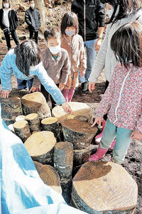 ヒラタケ「収穫楽しみ」 関市板取“モネの池”近く 小中生ら植菌体験