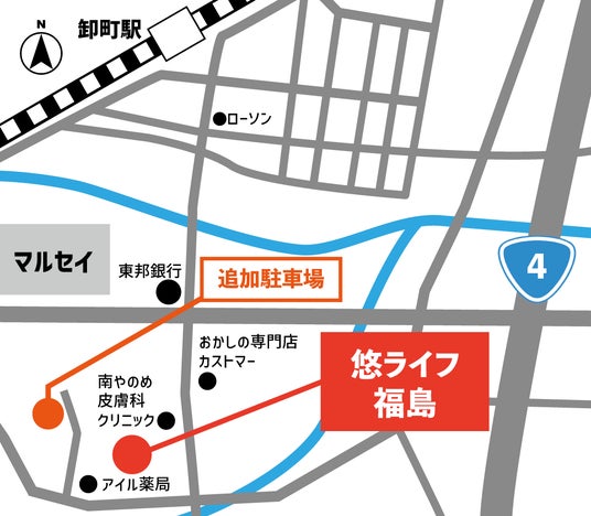 JR東福島駅から車で約10分の立地で、ご家族の訪問にも便利な環境です。