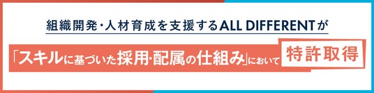 累計20,000社450万人以上の組織開発・人材育成を支援するALL DIFFERENT(オールディファレント)株式会社(所在地:東京都千代田区 代表取締役社長:眞崎大輔)は、「スキルに基づいた採用・配属の仕組み」において特許を取得したことをお知らせします。