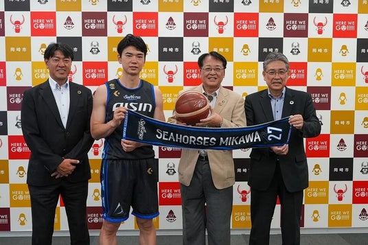 2025年7月15日(火)、取締役社長・寺部康弘と佐古チームディレクター、#27 石井講祐選手が岡崎市の内田康宏市長を表敬訪問いたしました。2024-25シーズンの活動報告と2025-26シーズンに向けての意気込みをお伝えし、併せて西三河地区の皆さまのご支援もあり、2年連続のチャンピオンシップ出場を果たせたことへの御礼を申し上げました。