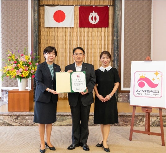 愛知県では、「女性が元気に働き続けられる愛知」の実現に向けて、2013年度から「あいち女性の活躍促進プロジェクト」を推進しています。このプロジェクトの一環として、「あいち女性輝きカンパニー」認証企業の中から、県が実施する女性の活躍促進の取組に協力する企業・団体に「あいち女性の活躍プロモーションリーダー」を委嘱しています。当社の取り組みと今後について