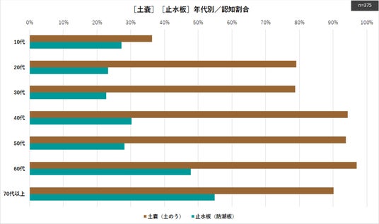 [浸水対策用品に関するアンケート調査]年代別/認知割合