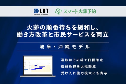 岐阜県飛騨市役所と沖縄県うるま市「公益財団法人 いしかわ斎苑」は、これまで電話・FAXを利用していた火葬場の予約をデジタル化し、2025年から本格稼働しました。飛騨市では年間約 560 件の予約がオンライン化され電話応対はほぼゼロ。窓口中断と宿直呼び出しがほぼ解消されています。いしかわ斎苑では稼働率が約 1 割向上し、地域の火葬受入能力の拡大にも貢献しています。近年、死者数の増加に伴い、火葬場では担当者の負担増や、順番待ちに関する課題などが挙げられています。デジタル化によって、こうした負担を緩和できると考えています。
