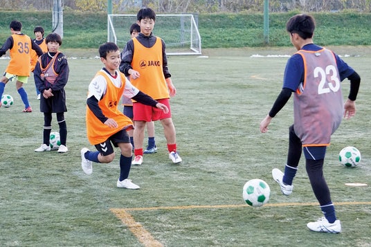 学校の垣根を超えてサッカーの練習をする合同チーム
