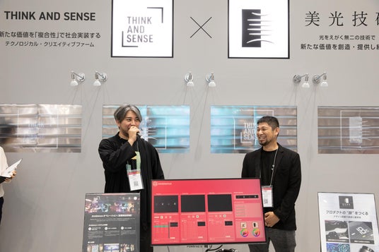 THINK AND SENSEが開発した空間演出特化のオペレーションツール「Ambience」。LED照明や透過ディスプレイを一つの画面で直感的に操作できるツールで、実際の現場運用を体験いただきました。