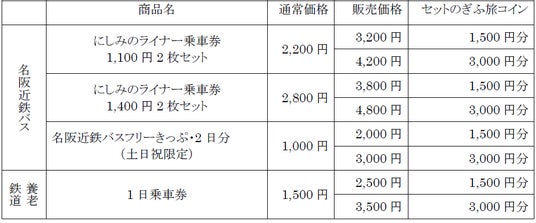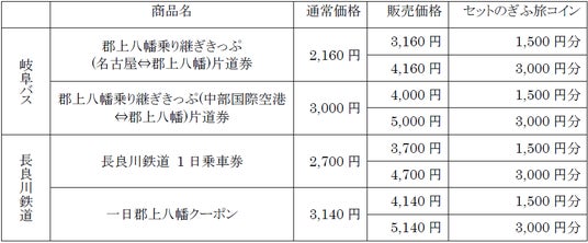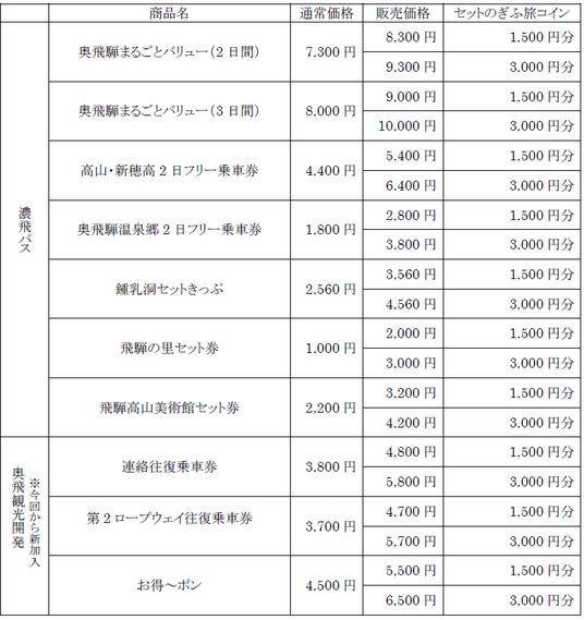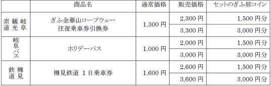 ・乗車券+2,000円のキャンペーン商品で、3,000円分のぎふ旅コイン付き。(1,000円分お得です。)