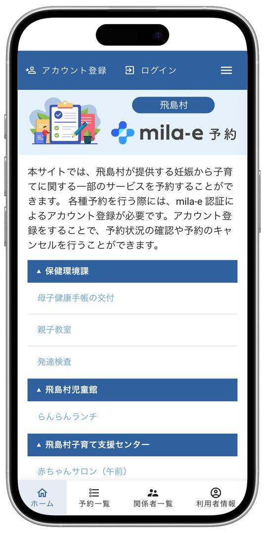 愛知県 飛島村では、妊娠・子育て家庭に寄り添った子育てサービスを提供するため、2025年 5月よりミラボが開発・提供する 母子手帳アプリを導入し、「とびハピ(*)」として提供しております。今回 同アプリに続いて、オンライン予約「mila-e 予約」を導入する運びとなり、「母子健康手帳の交付」をはじめ、「言語聴覚士による相談」等の各種相談や「親子教室」「発達検査」「赤ちゃんサロン」など25項目を対象に運用を開始しました。