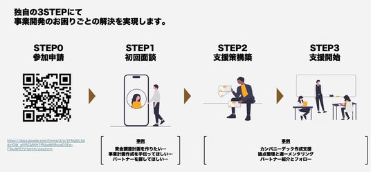 Relicが4,000社20,000件以上の新規事業開発支援で培ったノウハウを活かし、製造業をベースに、専門家によるレクチャーやメンタリング、リアルに集まれる場の提供により、スタートアップ創出から事業化まで一連の支援を実施するテイラーメイド型プログラムです。新たなビジネスアイデアを持つ企業/大学/自治体や起業家を対象に、アイデアの具体化から市場投入までのプロセスを包括的に支援します。業界の専門家やメンターとの連携を通じて、事業の成長と拡大をサポートすることを目的としています。