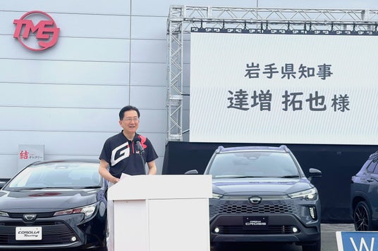 続けて登壇した達増知事は、復興に際した支援への感謝を述べるとともに、「岩手の魅力・総力を結集したカローラ クロスというMade In Iwateの宝がまた増えたと感じている」と、カローラシリーズが再び岩手県で生産されることへの喜びを表現しました。