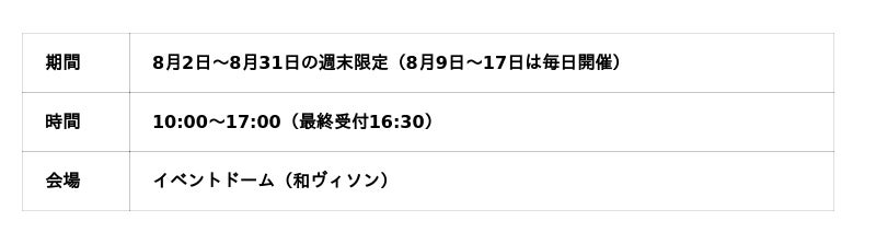 暑い夏も涼しく楽しめる!VISONならではの夏の特別な体験(開催期間:2025年8月2日(土)~8月31日(日))