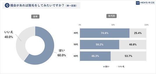 ◎年代が下がるほど「脱毛に興味が高い」結果に◎60代男性も46.3%が「脱毛をしてみたい」と回答した