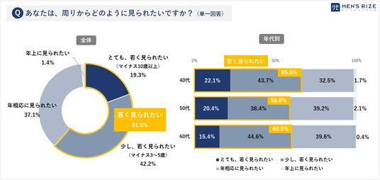 ■5.【周囲からどう見られたい?】中高年男性の6割が「若く見られたい」と回答(61.5%)