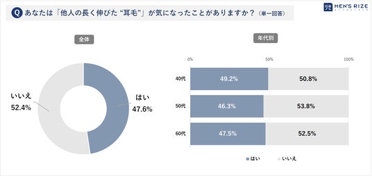 ◎40代が最も多く、49.2%が「他人の耳毛を気になった」経験◎他人の「シニア毛」が気になる中高年男性は約5割いる結果に