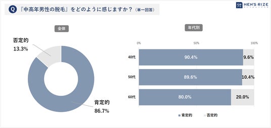 ●【『中高年男性の脱毛』をどのように感じるか?】の問いに、中高年男性の9割が「肯定的」と回答(86.7%)。