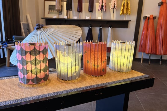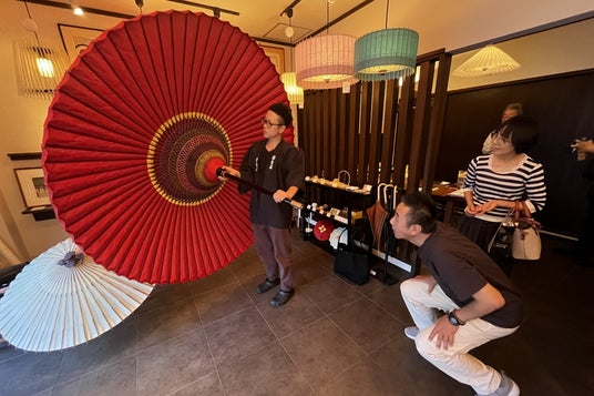 江戸時代から160年以上世界が認める日本の美の伝統を守り続ける京和傘の老舗日吉屋。この工房では匠の技と革新が融合し誕生した、京和傘の構造を活かした卓上照明「古都里」制作を体験。工房見学では、開閉可能な複雑な構造や、歌舞伎、茶道にも息づく和傘文化の奥深さに触れることができた。