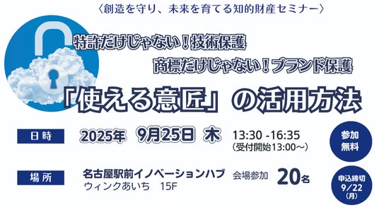 【共催】(公財)名古屋産業振興公社 名古屋市 日本弁理士会東海会