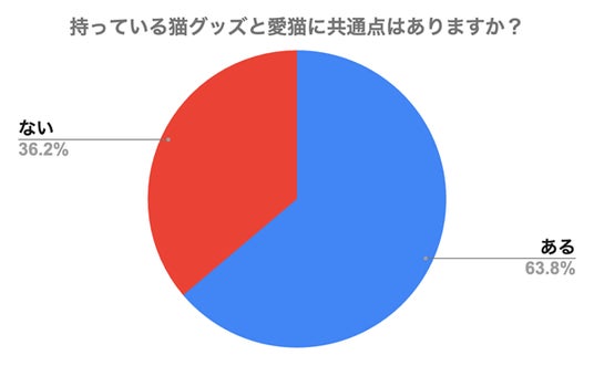 愛猫と似た特徴を持つ猫グッズを選ぶ傾向があるかを尋ねたところ、「ある(当てはまる)」と答えた人は63.8%にのぼっています。