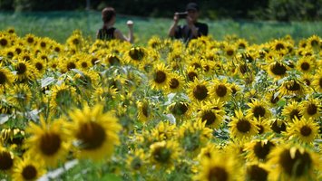 高山市のアルコピア、20万本ヒマワリ満開 鮮やかな黄色が一面に