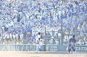 兵庫県西宮市の甲子園球場で19日行われた全国高校野球選手権大会の準々決勝は、県代表の県岐阜商が延長十一回タイブレークの末に横浜(神奈川)に8-7でサヨナラ勝ちした。一塁側アルプススタンドには、県岐阜商の生徒や家族、OBら約1900人が詰めかけ、応援席を清流の青色に染め上げた。終盤は互いに一歩も引かない緊迫した試合展開となったが、ピンチを乗り越えるたびにスタンドは一体感を増し、優勝候補を破る劇的な勝利に酔いしれた。