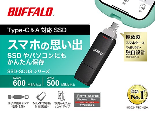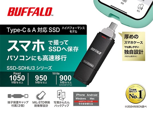 株式会社バッファロー(本社:東京都千代田区、代表取締役 社長執行役員CEO:牧 寛之、以下バッファロー)は、USB 3.2(Gen 2)に対応し、Type-CとType-Aの両方の端子を備えたスティック型SSD 2シリーズを、2025年9月中旬より順次出荷いたします。