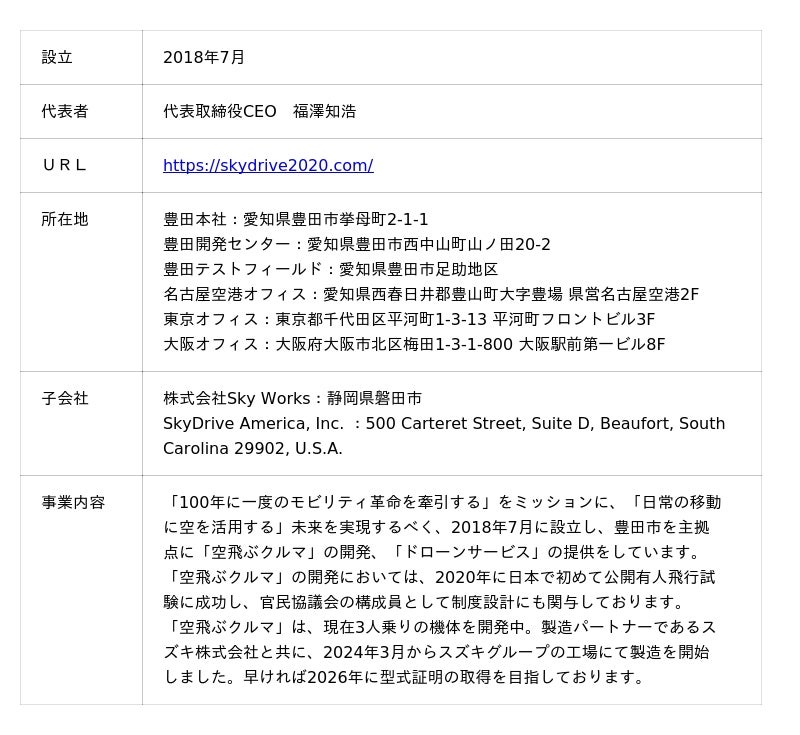 ≪株式会社SkyDrive 概要≫
