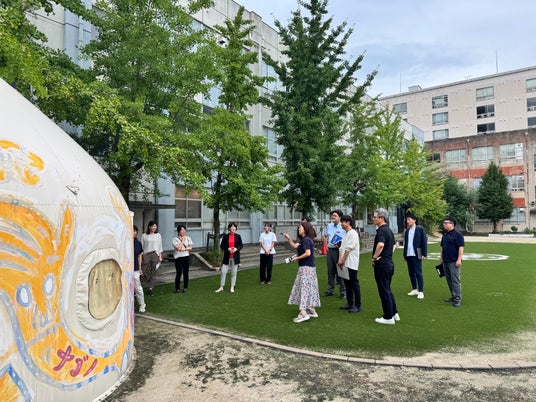 続いて、名古屋市が旧那古野小学校跡地を活用して運営するスタートアップ支援拠点「なごのキャンパス」を視察。市民と起業家が自然に交流できる空間や、多様な支援プログラムの取り組みを学びました。村田市長は裾野市へのスタートアップ誘致を目的に、2社の企業とトップセールス商談を実施。市の産業資源や暮らしやすい環境を直接伝え、将来の進出や連携のきっかけづくりを行いました。