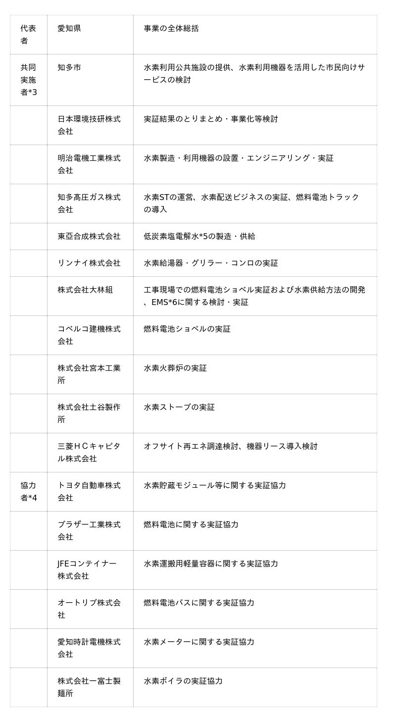 *1 2024年6月28日開示 愛知県ニュースリリース「知多市における低炭素水素モデルタウン事業の事業化可能性調査を開始します[環境省事業に採択されました!]」