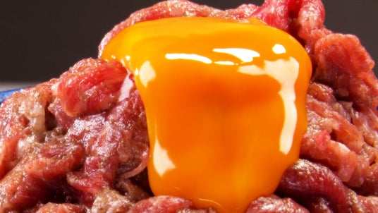 黄身がかかった絶品牛丼