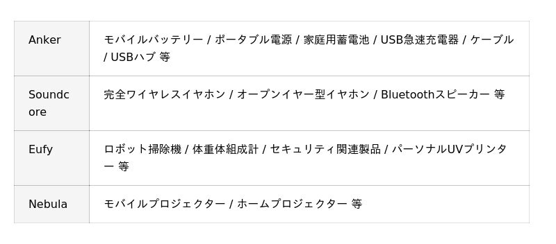 - Anker、Soundcore、Eufy、NebulaおよびAnker Solixは、アンカー・ジャパン株式会社またはその関連会社の商標または登録商標です。
