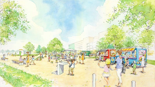 プロロジスは施設の敷地内に、イベントなどに活用でき近隣住民の憩いの場となる広場の整備を予定しており、周辺企業と連携して地域に賑わいを生む施策を検討しています。