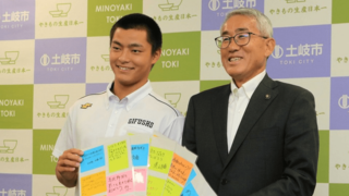 県岐阜商の〝首位打者〟宮川選手「応援で気持ちよく打てた」 地元の大野町役場を訪問 甲子園4強