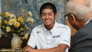 第107回全国高校野球選手権大会で16年ぶりのベスト4進出を果たした県岐阜商業高校野球部。3年生の二塁手、駒瀬陽尊(きよたか)選手(17)=笠松町出身=が27日、地元の町役場を訪れた。古田聖人町長に面会し「みんなどんな時も笑顔で、一緒に考えて乗り切った」と、快挙を達成した甲子園での戦いを振り返った。