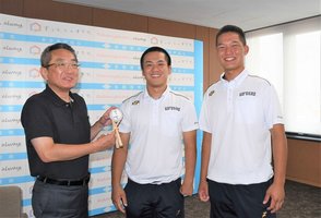 第107回全国高校野球選手権大会で4強入りした県岐阜商業高校野球部の3年、横山温大選手(18)と中下絢太選手(17)=いずれも各務原市出身=が29日、同市役所に浅野健司市長を訪ね、大会での活躍を報告した。左手指欠損というハンディを克服し、攻守で躍動した横山選手は「甲子園は夢で、最高の舞台だった」と声を弾ませた。
